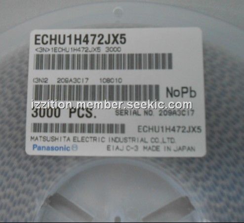 ECHU1H472JX5 specifications: (1)Category temp. range(Including temperature-rise on unit surface): -55 ℃ to + 125 ℃; (2)Rated voltage: 10 VDC, 16 VDC, 50 VDC(50 VDC: 0.12 μF or more: Derating or rated voltage by 1.25 % / ℃at more than 105 ℃); (3)Capacitance range: 0.00010 μF to 0.22 μF (E12); (4)Capacitance tolerance: ±2 %(G), ±5 %(J); (5)Withstand voltage: Between terminals : Rated volt. (VDC)×150 % 60 s; (6)Dissipation factor (tanδ): tanδ≦0.6 % (20 ℃, 1 kHz); (7)Insulation resistance (IR): 10 VDC: IR≧3000 MΩ (20 ℃, 10 VDC, 60 s); 16 VDC: IR≧3000 MΩ (20 ℃, 10 VDC, 60 s); 50 VDC: IR≧3000 MΩ (20 ℃, 50 VDC, 60 s); (8)Soldering conditions: Reflow soldering: 260 ℃ max. and 95 sec max. at more than 220 ℃ (Temp. at cap. surface).